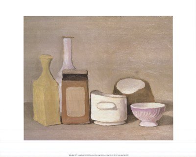 Title: Natura Morta 1944. Artist: Giorgio Morandi. Image Size: 15.05in. x 12.43in. Paper Size: 19.75in. x 15.75in. MUSEUM WRAP CANVAS Print With Added Heavy BRUSHSTROKES
